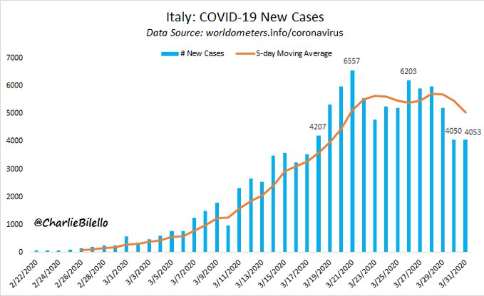 Italy reported 8,103 new COVID-19 cases over the last 2 days, the lowest 2-day increase since March 17-18