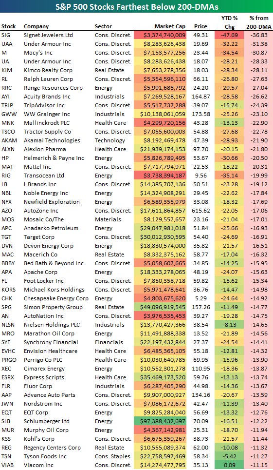 The list of S&P 500 stocks farthest below their 200-DMAs is littered with retailers, REITs and Energy stocks