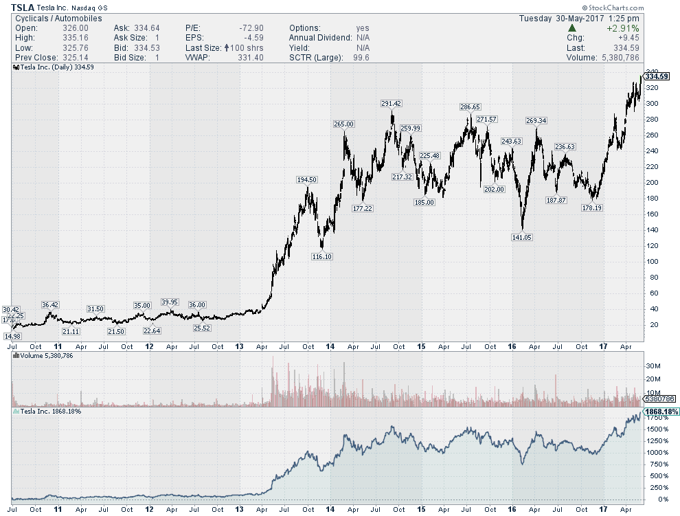 Tesla hit all-time highs again the last days. It's up 56% THIS YEAR alone. That's about $20 billion in market cap
