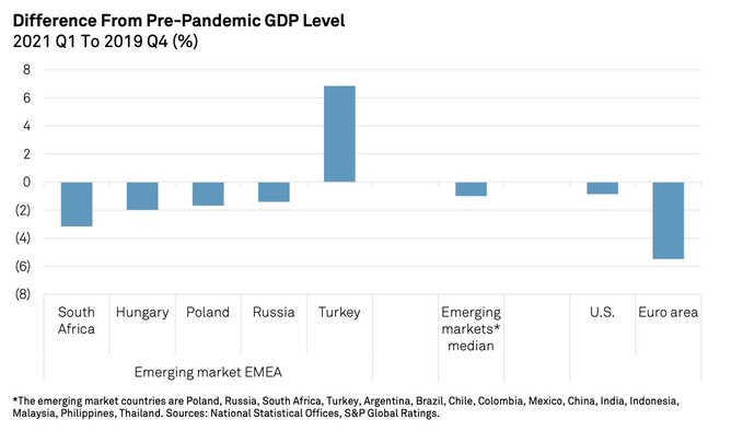 Emerging market economies in EMEA are recovering faster than S&P Global Ratings previously expected from the COVID-19 related downturn