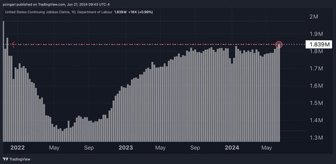 Continuing unemployment claims hit November 2021 highs today