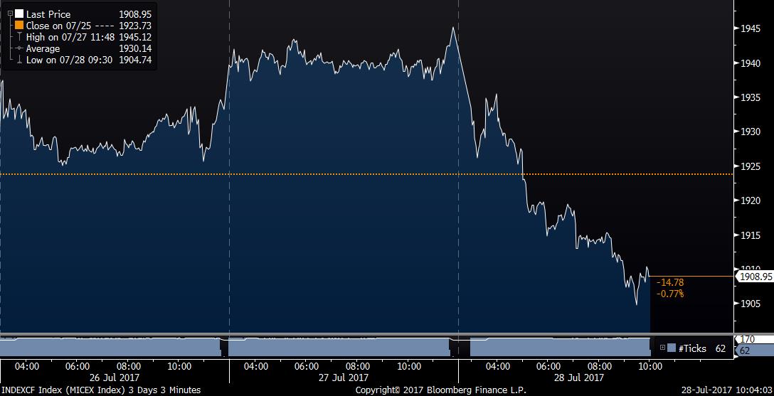 Russian stocks sank and the ruble erased gains after Moscow responded to tougher U.S. sanctions