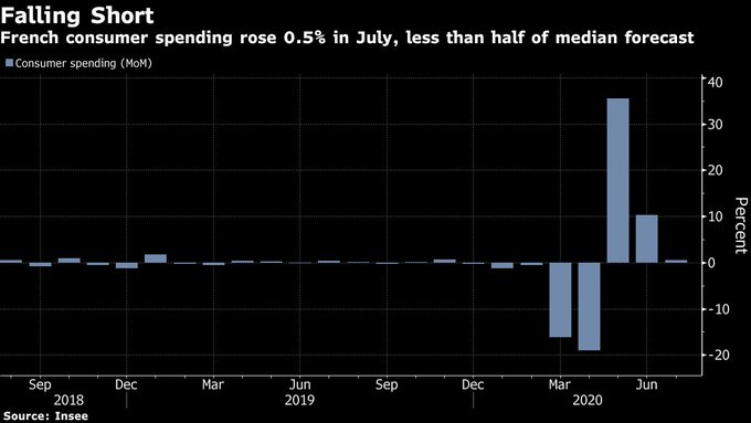 French consumer spending rose less than forecast in July and