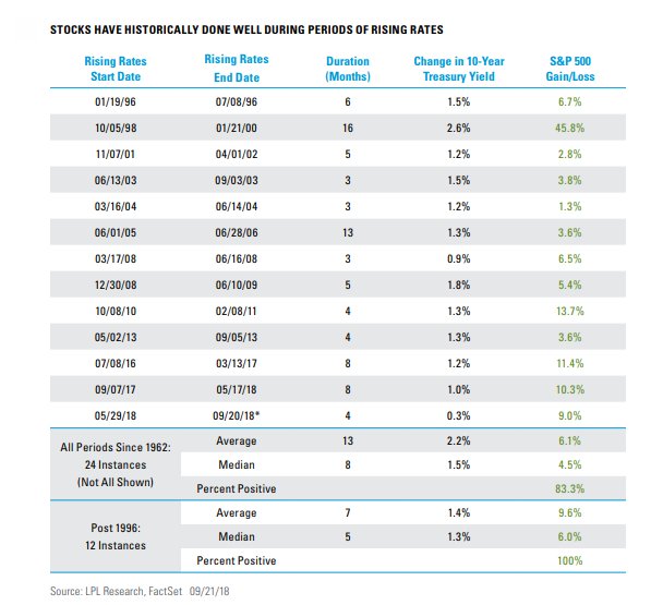 periods of a higher 10-yr yield and the S&P 500 gained every
