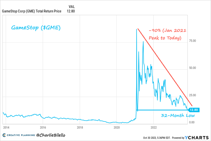 GameStop closed at a 32-month low today, down 90% from its