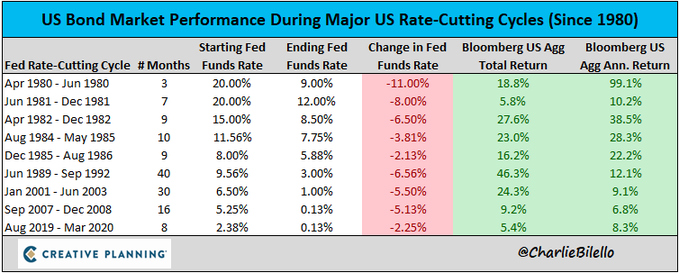 Fed rate-cutting cycles have been great environments for bonds in the past. Seeing that again this year.
