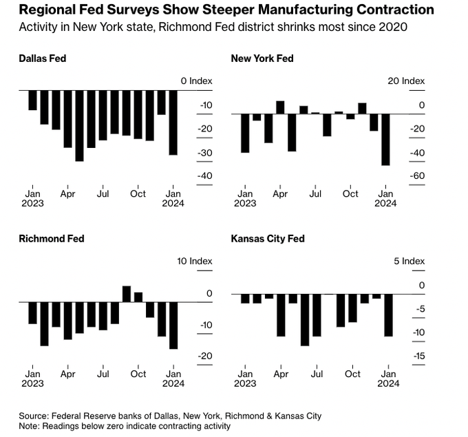 The Federal Reserve Bank of Dallas said its general business activity index slid 17 points in January to minus 27.4, per Bloomberg