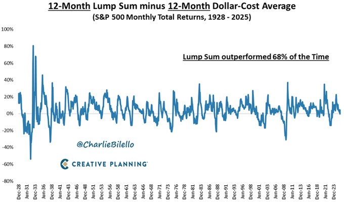 dollar-cost averaging (DCA) into stocks over 12 months will