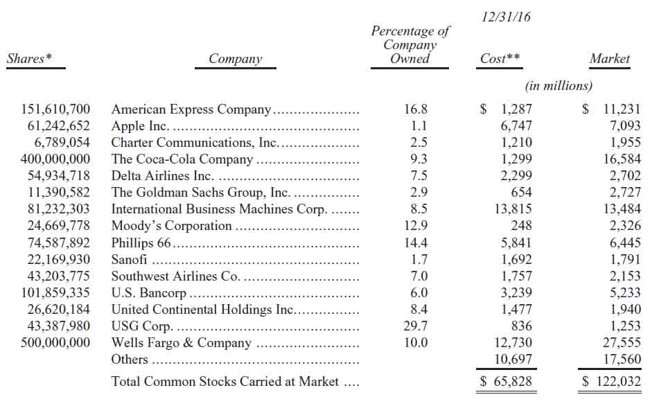 Here are Warren Buffett's 15 biggest investments. All listed one table