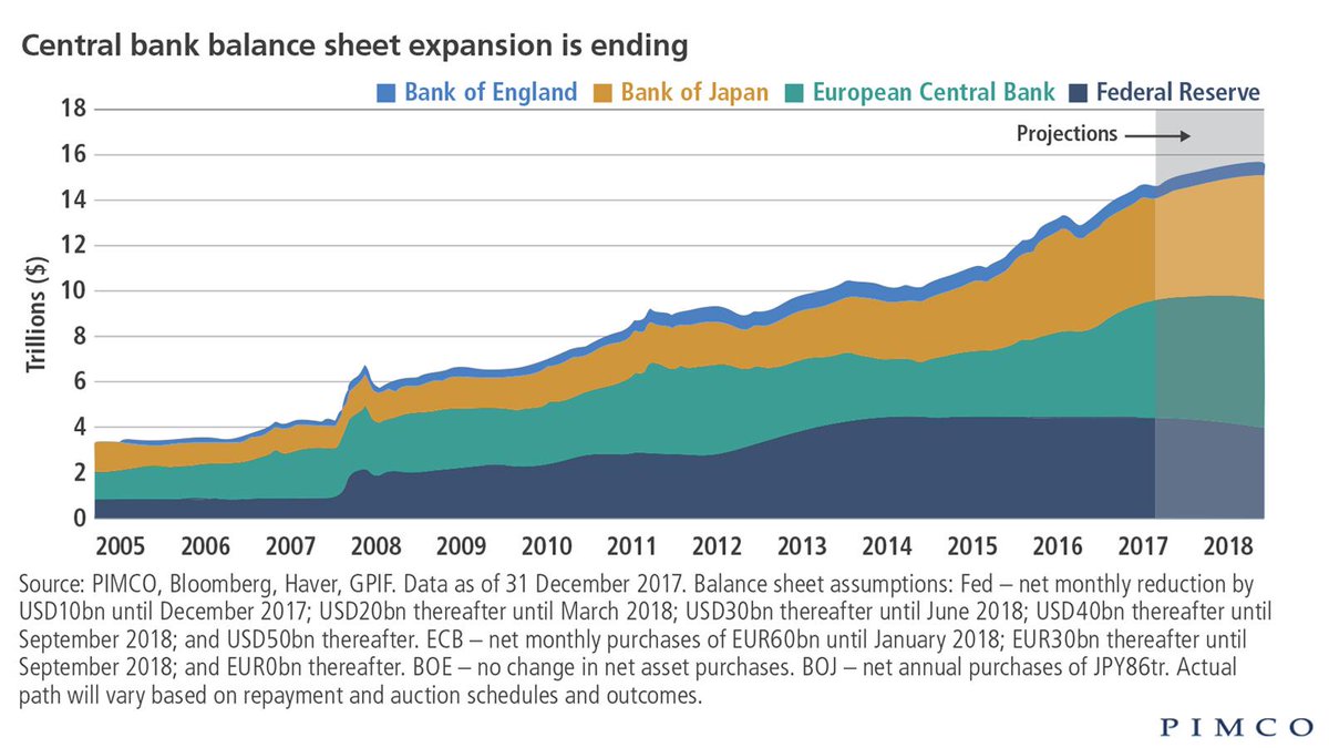 Pimco: Central bank balance sheet expansion should flat-line in 2018 and reverse in 2019