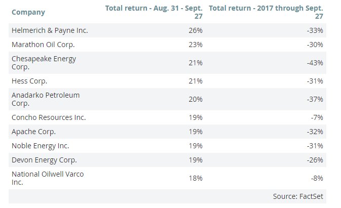 10 energy stocks in the S&P 500 that have performed best on September