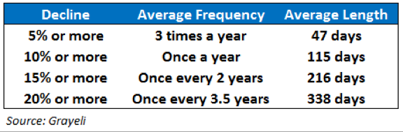 How often does a 5% correction happen? What about a 10% correction?