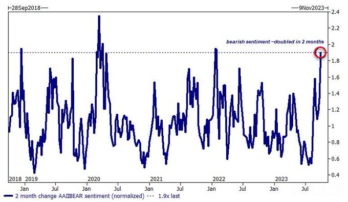Βearish sentiment spike almost as big as March 2020 when stocks crashed 30%