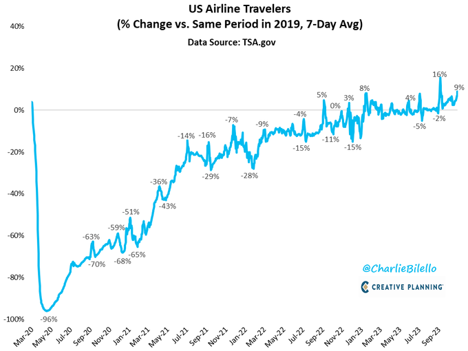 US Airline travel is running 9% above the same period in