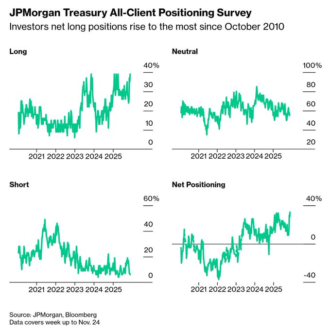 Investors net long positions rose to the highest level since October of 2010, per JP Morgan
