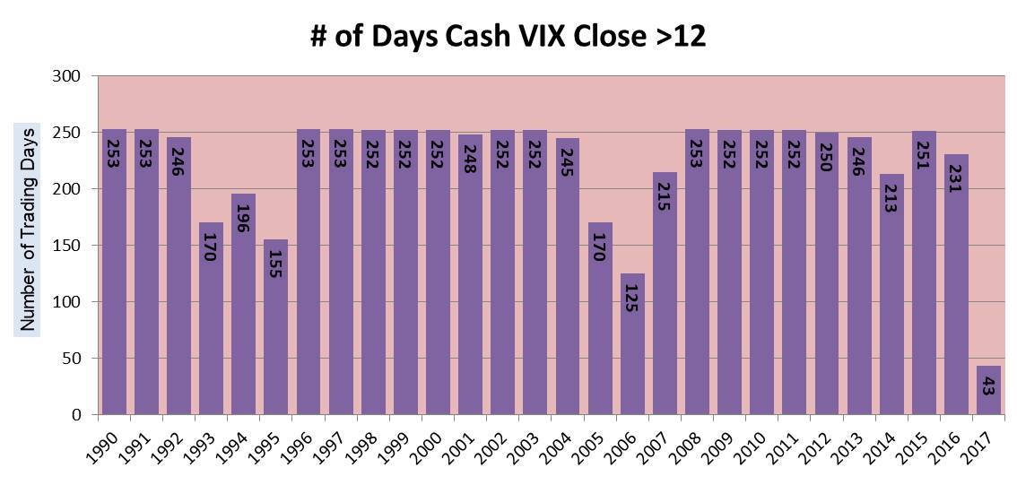 The VIX spent a record amount of time closing below $12 in 2017