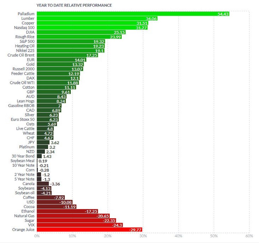 2017 snapshot of relative performance from Palladium to Orange Juice