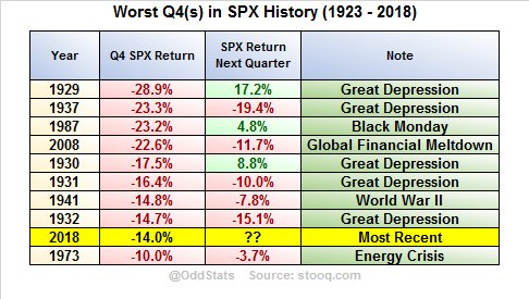 OFFICIAL LIST OF WORST 4TH-QUARTERS IN SPX HISTORY
