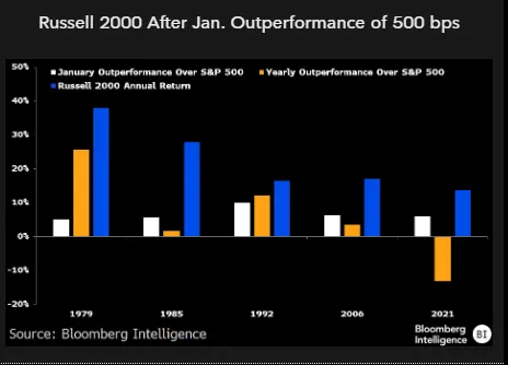 Most of the time when the Russell 2000 starts the year strong, it keeps pushing higher