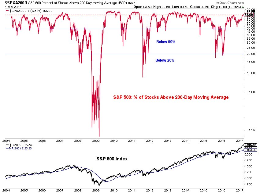 S&P 500: 83.6% of stocks closed above their 200-day moving average, most since September 2014