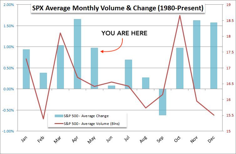 500 SPX. The red line shows average trading volume |