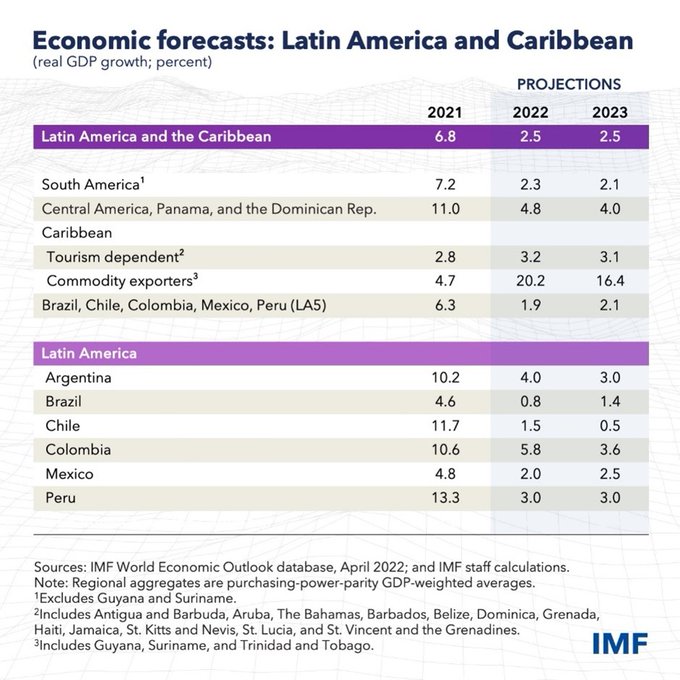 IMF growth projections for 2022 in Latin America & the Caribbean