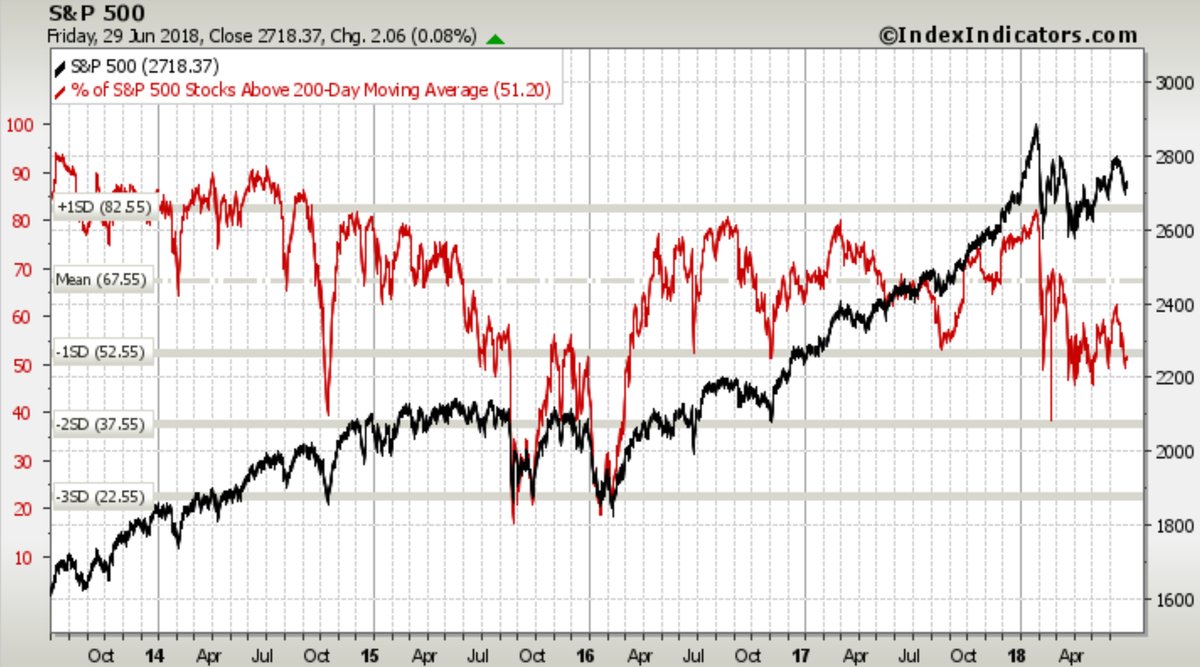 51.2% of stocks are trading above their 200-day moving average in the S&P500