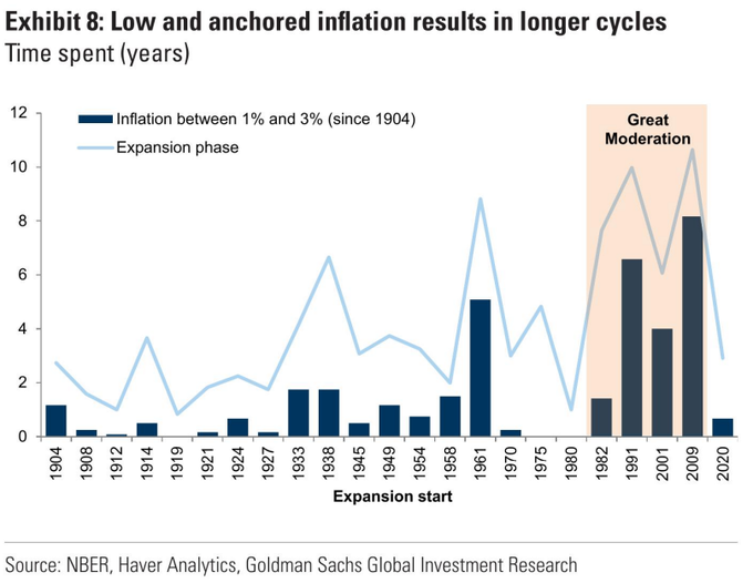 The longer we spend in low and anchored inflation, the longer we experience an expansionary cycle.