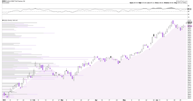 The NASDAQ closes out its best first half of a year ever, with QQQ up nearly 40%