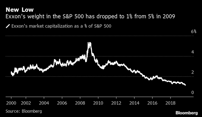 For the 1st time in the 90 year history of the S&P 500, Exxon drops out of its top 10 stocks