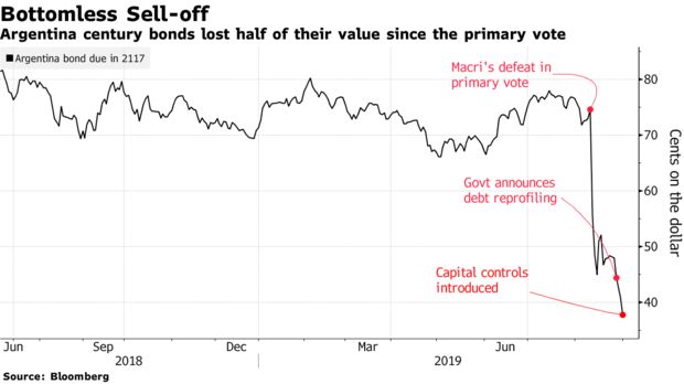 Money managers dump Argentina's Eurobonds after the government announces new capital controls
