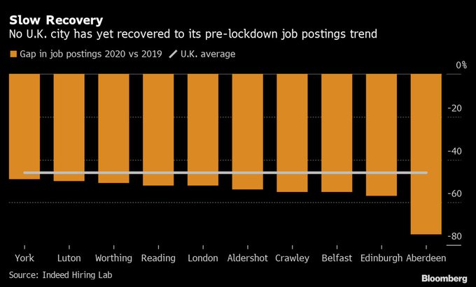 Employment in some of the UK’s biggest cities, such as