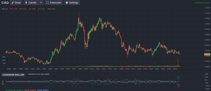 Short positioning in the Canadian dollar vs USD is getting