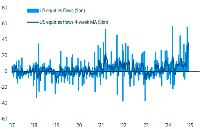into equities over the last four weeks, according to BofA,