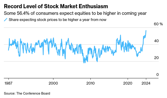 spotted as 56.4% of US consumers expect stocks to be higher