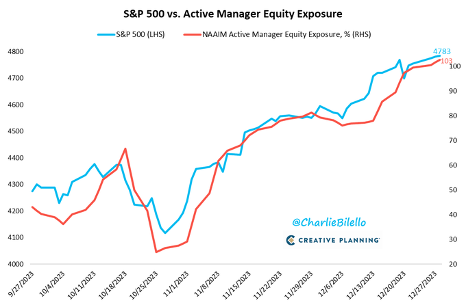 Active managers had less than 25% exposure to equities in late October when the S&P 500 was at 4,100