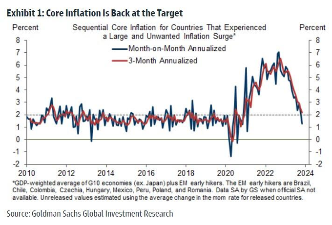Core inflation is back at the Fed's target, providing them a path towards easing of policy in 2024