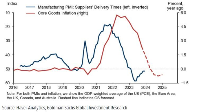 Will core goods inflation perk up, following rising manufacturing PMI delivery times as we see some stress on supply chains?