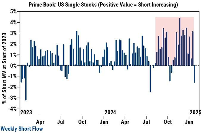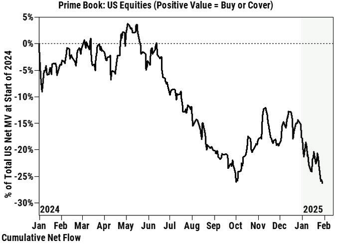 Weekly flows flipped net short last week, with the deepest net selling of US stocks since summer of 2024, per Goldman