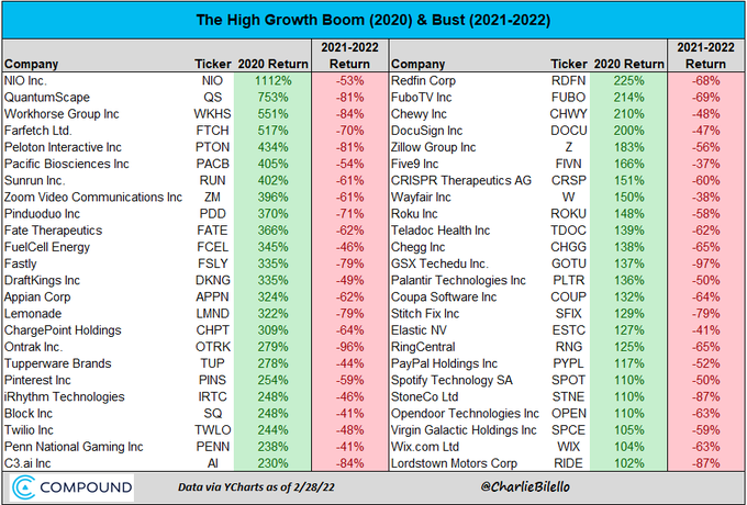 The Boom (2020) and Bust (2021/22) in High Growth Stocks...