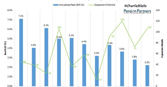 Real US GDP has increased for 107 straight months