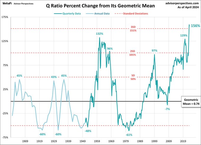 1.90 are overvalued by 156% to the long term mean (Q ratio
