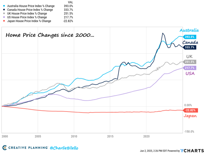 Home Price changes since 2000... Australia: +393% Canada: +334% UK: +252% US: +218% Japan: -23%