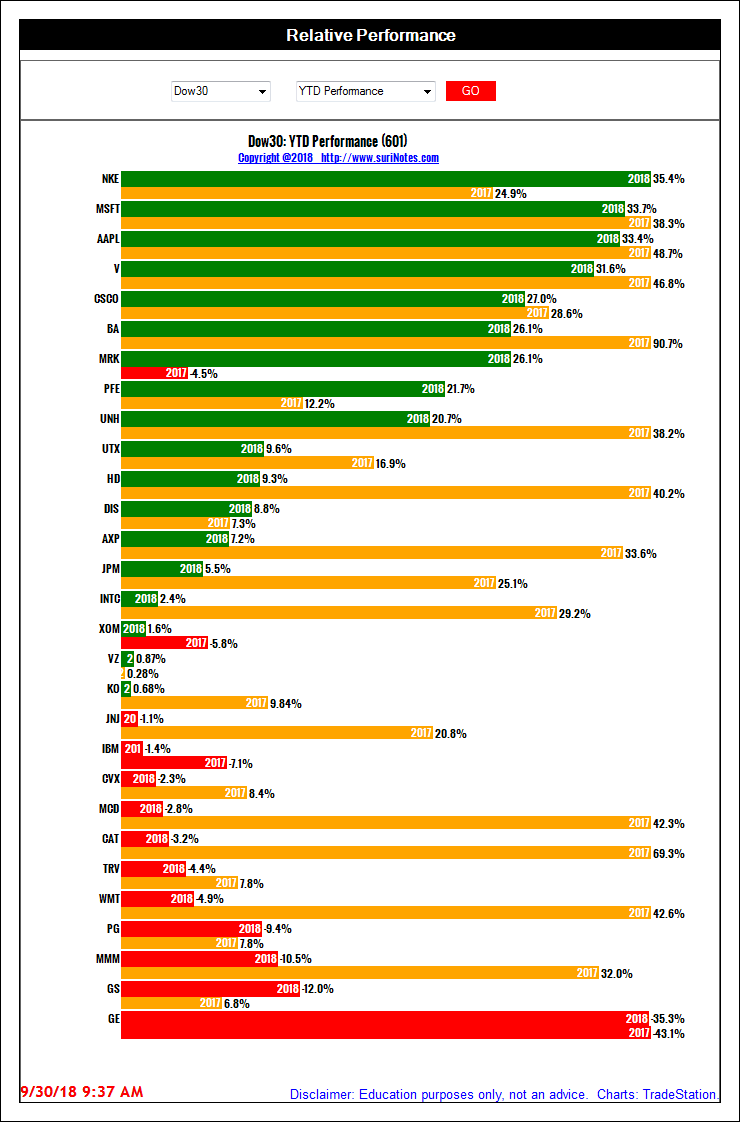 There are only two stocks in the Dow that were down in 2017 and also so far in 2018. They are: GE GE 2017 -43% 2018 -35% IBM IBM 2017 -7.1% 2018 -1.1%