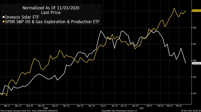 Since Biden's victory, the big Oil & Gas ETF is crushing the big solar ETF. Just like everyone predicted