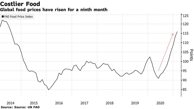 Global food prices have risen for their 9th straight month. Their longest such increase since 2008