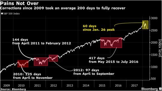 How long does it take for a correction to completely recover? Since 2009, the number is about 200 days