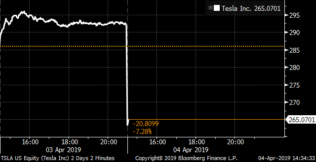 Tesla plunges at the start of trade after disappointing Model 3 delivery numbers