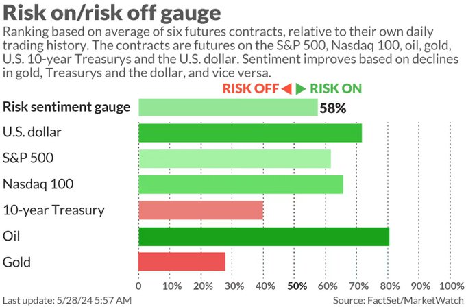 We're at 58% Risk On according to MarketWatch's risk gauge,