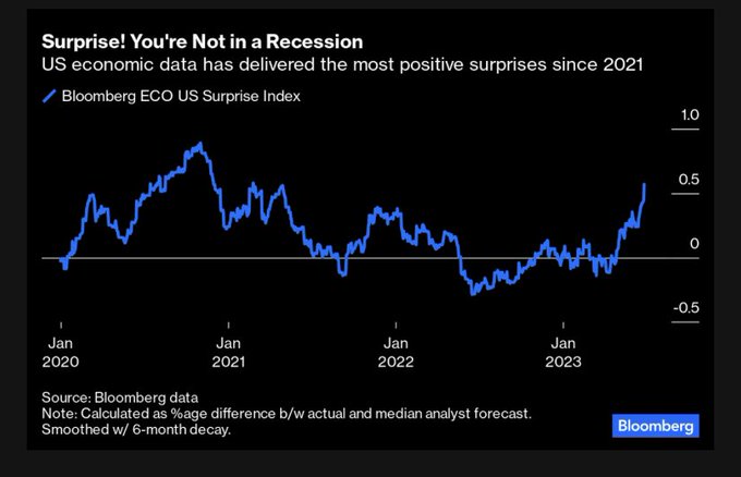 The Bloomberg ECO US Surprise Index has risen to the highest